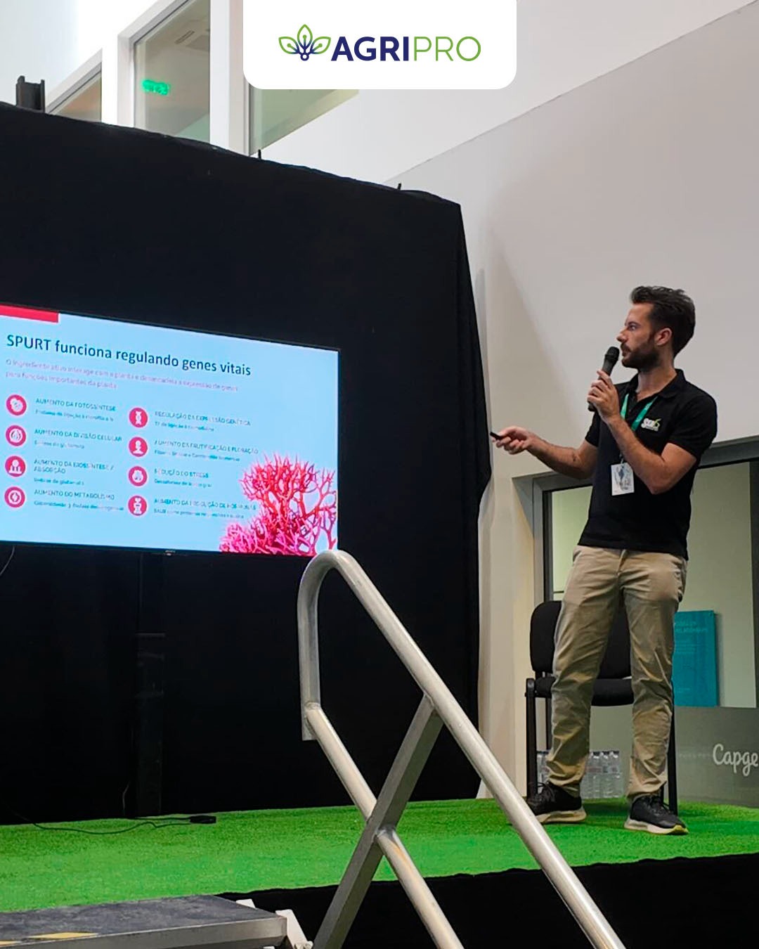 Com stand próprio e presença ativa no Espaço Pitch, apresentámos o Spurt — a nossa mais recente solução de regulação génica, com base em extrato puro de algas vermelhas tropicais. Uma proposta inovadora que atua de forma natural no equilíbrio hormonal das plantas, promovendo maior vigor, resiliência ao stress e eficiência produtiva. Uma ferramenta que espelha bem aquilo que nos move: trazer ciência e natureza para o centro da produtividade agrícola.