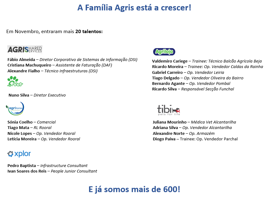 Neste mês de Novembro chegaram ao Grupo 20 novos talentos e já somos mais de 600 nesta família!